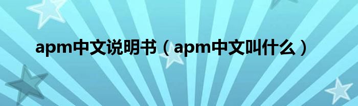 大家好,精选小综来为大家解答以上的问题。apm中文说明书,apm中文叫什么很多人还不知道,现在让我们一起来看看吧!
