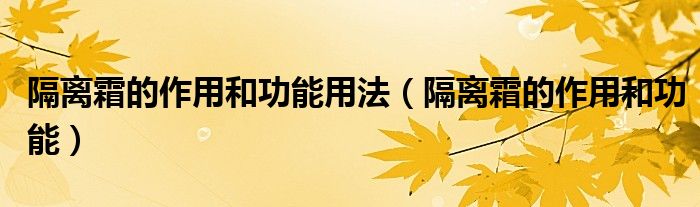 导读 大家好,精选小综来为大家解答以上的问题。隔离霜的作用和功能用法,隔离霜的作用和功能很多人还不知道,现在让我们一起来看看吧!隔离霜具
