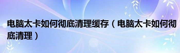 导读 大家好,精选小综来为大家解答以上的问题。电脑太卡如何彻底清理缓存,电脑太卡如何彻底清理很多人还不知道,现在让我们一起来看看吧!以联