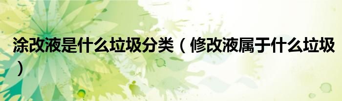 大家好,精选小综来为大家解答以上的问题。涂改液是什么垃圾分类,修改液属于什么垃圾很多人还不知道,现在让我们一起来看看吧!
