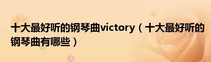 大家好,精选小综来为大家解答以上的问题。十大最好听的钢琴曲victory,十大最好听的钢琴曲有哪些很多人还不知道,现在让我们一起来看看吧!