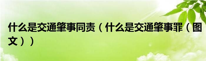 大家好,精选小综来为大家解答以上的问题。什么是交通肇事同责,什么是交通肇事罪,图文很多人还不知道,现在让我们一起来看看吧!