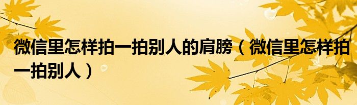 导读 大家好,精选小综来为大家解答以上的问题。微信里怎样拍一拍别人的肩膀,微信里怎样拍一拍别人很多人还不知道,现在让我们一起来看看吧!以