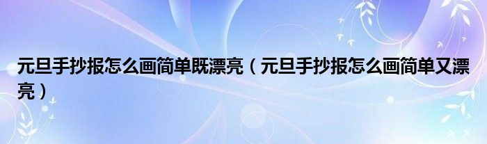 导读 大家好,精选小综来为大家解答以上的问题。元旦手抄报怎么画简单既漂亮,元旦手抄报怎么画简单又漂亮很多人还不知道,现在让我们一起来看看