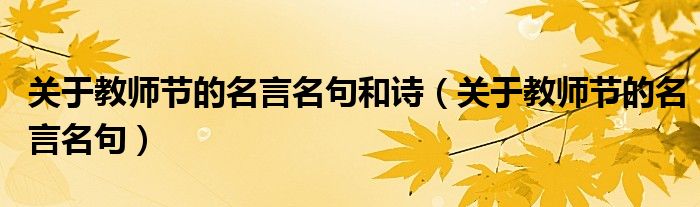 导读 大家好,精选小综来为大家解答以上的问题。关于教师节的名言名句和诗,关于教师节的名言名句很多人还不知道,现在让我们一起来看看吧!关于