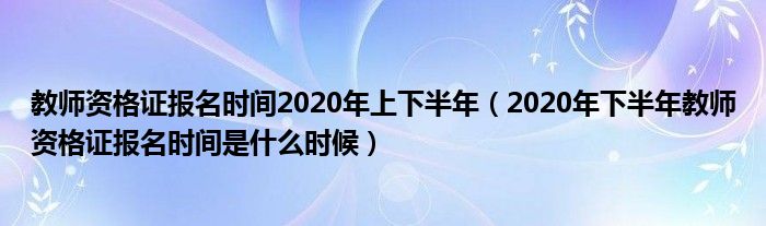 大家好,精选小综来为大家解答以上的问题。教师资格证报名时间2020年上下半年,2020年下半年教师资格证报名时间是什么时候很多人还不知道,现在让我们一起来看看吧!