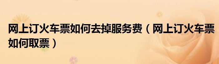 导读 大家好,精选小综来为大家解答以上的问题。网上订火车票如何去掉服务费,网上订火车票如何取票很多人还不知道,现在让我们一起来看看吧!随