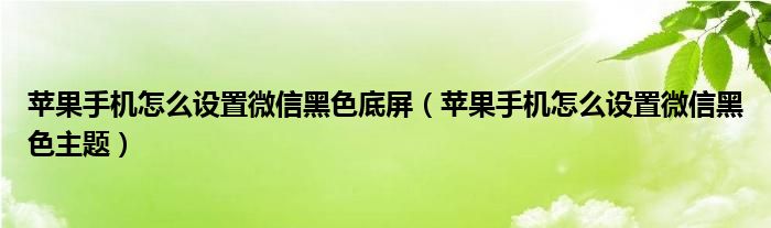 导读 大家好,精选小综来为大家解答以上的问题。苹果手机怎么设置微信黑色底屏,苹果手机怎么设置微信黑色主题很多人还不知道,现在让我们一起来