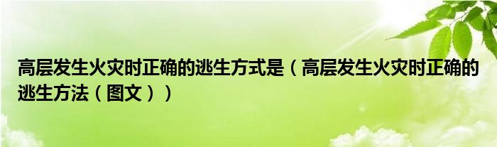导读 大家好,精选小综来为大家解答以上的问题。高层发生火灾时正确的逃生方式是,高层发生火灾时正确的逃生方法,图文很多人还不知道,现在让我