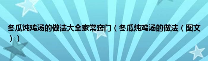 导读 大家好,精选小综来为大家解答以上的问题。冬瓜炖鸡汤的做法大全家常窍门,冬瓜炖鸡汤的做法,图文很多人还不知道,现在让我们一起来看看吧