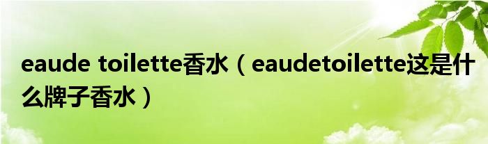 导读 大家好,精选小综来为大家解答以上的问题。eaude toilette香水,eaudetoilette这是什么牌子香水很多人还不知道,现在让我们一起来看看吧!