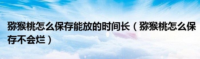导读 大家好,精选小综来为大家解答以上的问题。猕猴桃怎么保存能放的时间长,猕猴桃怎么保存不会烂很多人还不知道,现在让我们一起来看看吧!防