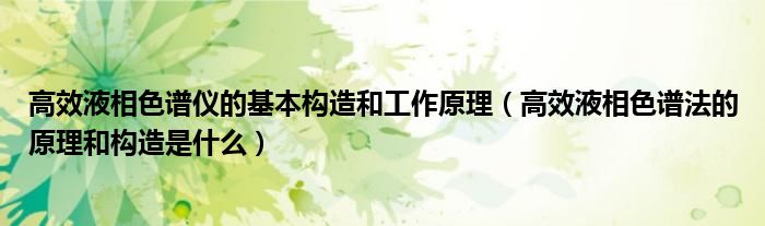 导读 大家好,精选小综来为大家解答以上的问题。高效液相色谱仪的基本构造和工作原理,高效液相色谱法的原理和构造是什么很多人还不知道,现在让