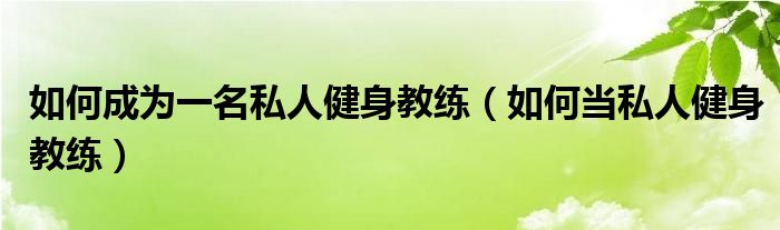 大家好,精选小综来为大家解答以上的问题。如何成为一名私人健身教练,如何当私人健身教练很多人还不知道,现在让我们一起来看看吧!