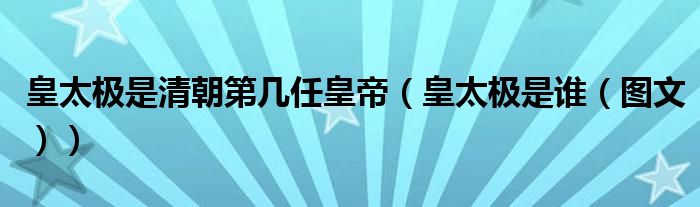 大家好,精选小综来为大家解答以上的问题。皇太极是清朝第几任皇帝,皇太极是谁,图文很多人还不知道,现在让我们一起来看看吧!