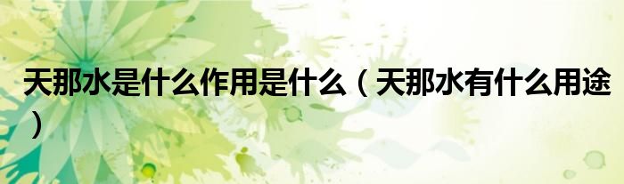 大家好,精选小综来为大家解答以上的问题。天那水是什么作用是什么,天那水有什么用途很多人还不知道,现在让我们一起来看看吧!