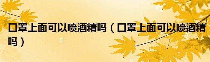 导读 大家好,精选小综来为大家解答以上的问题。口罩上面可以喷酒精吗,口罩上面可以喷酒精吗很多人还不知道,现在让我们一起来看看吧!不能在面