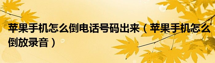 导读 大家好,精选小综来为大家解答以上的问题。苹果手机怎么倒电话号码出来,苹果手机怎么倒放录音很多人还不知道,现在让我们一起来看看吧!以