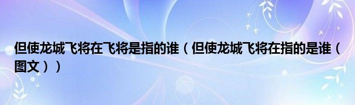 大家好,精选小综来为大家解答以上的问题。但使龙城飞将在飞将是指的谁,但使龙城飞将在指的是谁,图文很多人还不知道,现在让我们一起来看看吧!