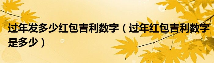导读 大家好,精选小综来为大家解答以上的问题。过年发多少红包吉利数字,过年红包吉利数字是多少很多人还不知道,现在让我们一起来看看吧!春节