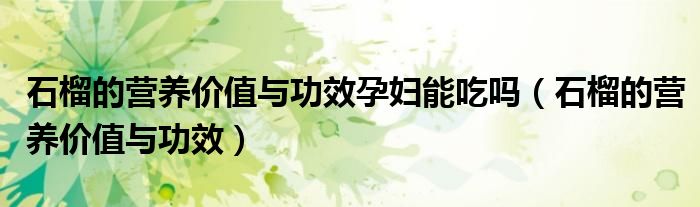 导读 大家好,精选小综来为大家解答以上的问题。石榴的营养价值与功效孕妇能吃吗,石榴的营养价值与功效很多人还不知道,现在让我们一起来看看吧