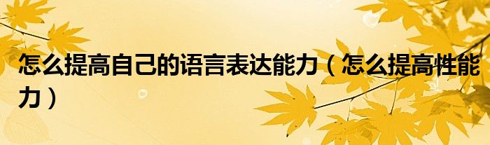 导读 大家好,精选小综来为大家解答以上的问题。怎么提高自己的语言表达能力,怎么提高性能力很多人还不知道,现在让我们一起来看看吧!每个男人