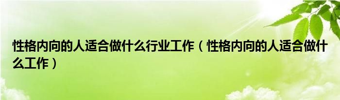 导读 大家好,精选小综来为大家解答以上的问题。性格内向的人适合做什么行业工作,性格内向的人适合做什么工作很多人还不知道,现在让我们一起来