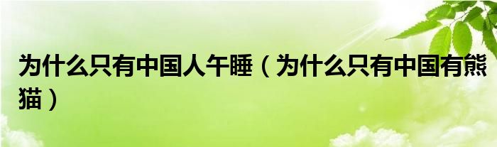 大家好,精选小综来为大家解答以上的问题。为什么只有中国人午睡,为什么只有中国有熊猫很多人还不知道,现在让我们一起来看看吧!