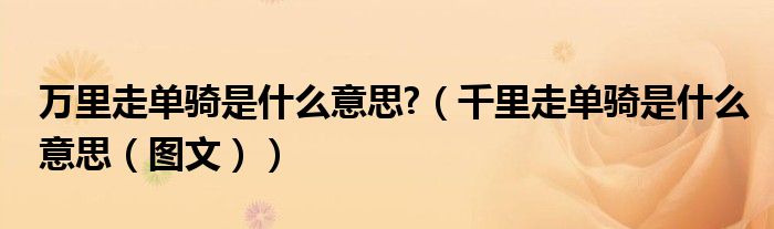 导读 大家好,精选小综来为大家解答以上的问题。万里走单骑是什么意思?,千里走单骑是什么意思,图文很多人还不知道,现在让我们一起来看看吧!