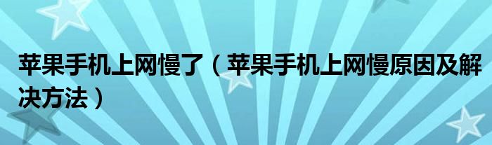 大家好,精选小综来为大家解答以上的问题。苹果手机上网慢了,苹果手机上网慢原因及解决方法很多人还不知道,现在让我们一起来看看吧!