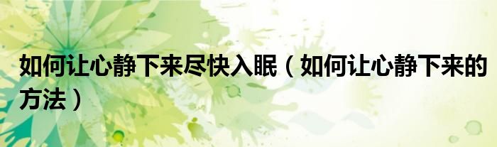 导读 大家好,精选小综来为大家解答以上的问题。如何让心静下来尽快入眠,如何让心静下来的方法很多人还不知道,现在让我们一起来看看吧!现实生