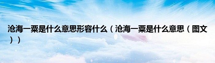导读 大家好,精选小综来为大家解答以上的问题。沧海一粟是什么意思形容什么,沧海一粟是什么意思,图文很多人还不知道,现在让我们一起来看看吧