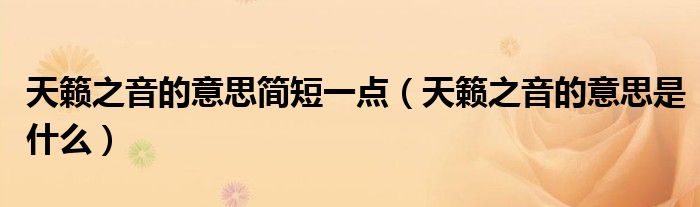 导读 大家好,精选小综来为大家解答以上的问题。天籁之音的意思简短一点,天籁之音的意思是什么很多人还不知道,现在让我们一起来看看吧!天籁的