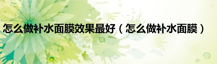 大家好,精选小综来为大家解答以上的问题。怎么做补水面膜效果最好,怎么做补水面膜很多人还不知道,现在让我们一起来看看吧!