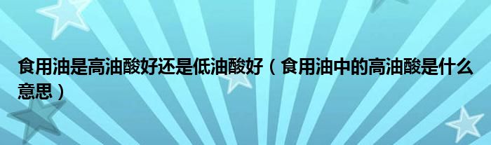 大家好,精选小综来为大家解答以上的问题。食用油是高油酸好还是低油酸好,食用油中的高油酸是什么意思很多人还不知道,现在让我们一起来看看吧!