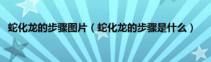 大家好,精选小综来为大家解答以上的问题。蛇化龙的步骤图片,蛇化龙的步骤是什么很多人还不知道,现在让我们一起来看看吧!