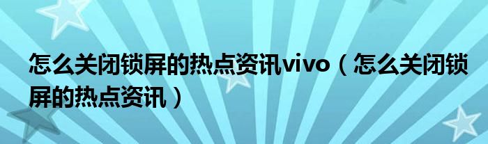 导读 大家好,精选小综来为大家解答以上的问题。怎么关闭锁屏的热点资讯vivo,怎么关闭锁屏的热点资讯很多人还不知道,现在让我们一起来看看吧!