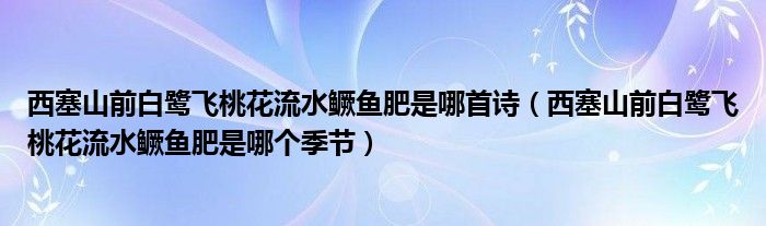 导读 大家好,精选小综来为大家解答以上的问题。西塞山前白鹭飞桃花流水鳜鱼肥是哪首诗,西塞山前白鹭飞桃花流水鳜鱼肥是哪个季节很多人还不知道