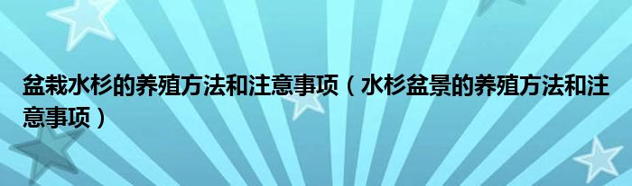导读 大家好,精选小综来为大家解答以上的问题。盆栽水杉的养殖方法和注意事项,水杉盆景的养殖方法和注意事项很多人还不知道,现在让我们一起来