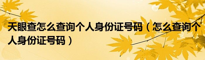 导读 大家好,精选小综来为大家解答以上的问题。天眼查怎么查询个人身份证号码,怎么查询个人身份证号码很多人还不知道,现在让我们一起来看看吧