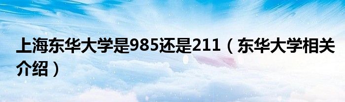 大家好,小相来为大家解答以上问题。上海东华大学是985还是211,东华大学相关介绍很多人还不知道,现在让我们一起来看看吧!