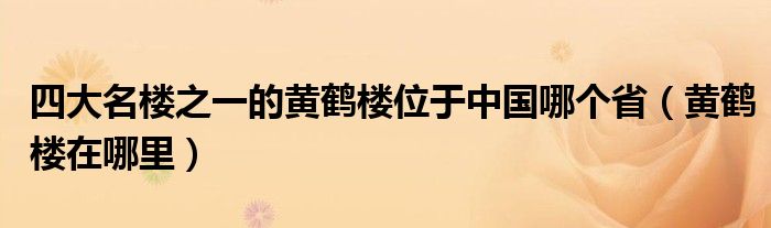 导读 大家好,小相来为大家解答以上问题。四大名楼之一的黄鹤楼位于中国哪个省,黄鹤楼在哪里很多人还不知道,现在让我们一起来看看吧!