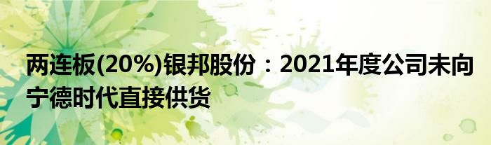 以上就是【两连板(20%)银邦股份:2021年度公司未向宁德时代直接供货】相关内容。