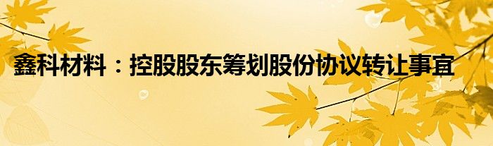 以上就是【鑫科材料:控股股东筹划股份协议转让事宜】相关内容。