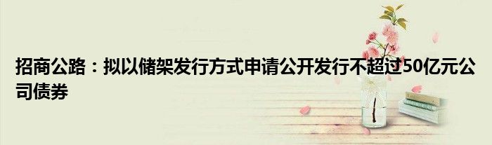 以上就是【招商公路:拟以储架发行方式申请公开发行不超过50亿元公司债券】相关内容。