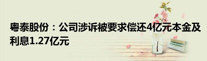 以上就是【粤泰股份:公司涉诉被要求偿还4亿元本金及利息1.27亿元】相关内容。