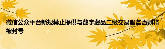 以上就是【微信公众平台新规禁止提供与数字藏品二级交易服务否则将被封号】相关内容。