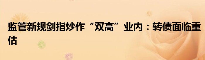 以上就是【监管新规剑指炒作“双高”业内:转债面临重估】相关内容。