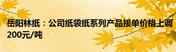 6月21日电,岳阳林纸在互动平台表示,公司近日发布产品调价函,自6月20日起纸袋纸系列产品接单价格上调200元/吨。