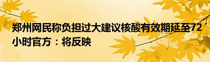 以上就是【郑州网民称负担过大建议核酸有效期延至72小时官方:将反映】相关内容。